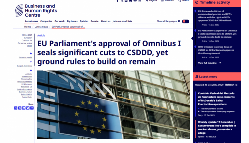 The European Parliament has today approved the sweeping Omnibus I deregulation package, a move that significantly weakens key EU corporate accountability laws – including the landmark Corporate Sustainability Due Diligence Directive (CSDDD).